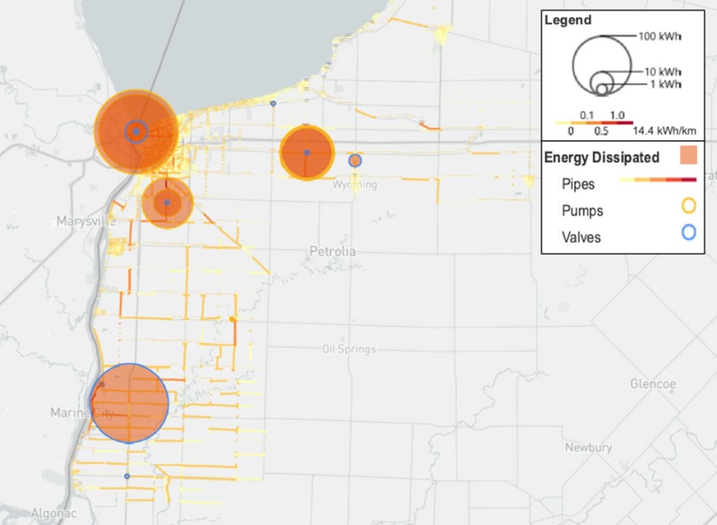 This project is a collaboration with the Canadian Urban Institute (CUI) and the Ontario Clean Water Agency (OCWA). An energy efficiency assessment tool is being developed for water distribution systems. The tool automatically calculates energy metrics for all network compoments and maps them. It is being applied to four pilot systems.